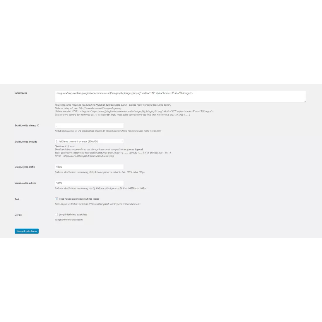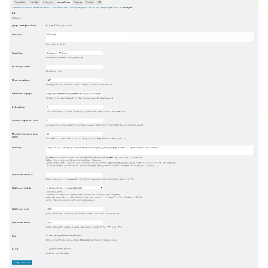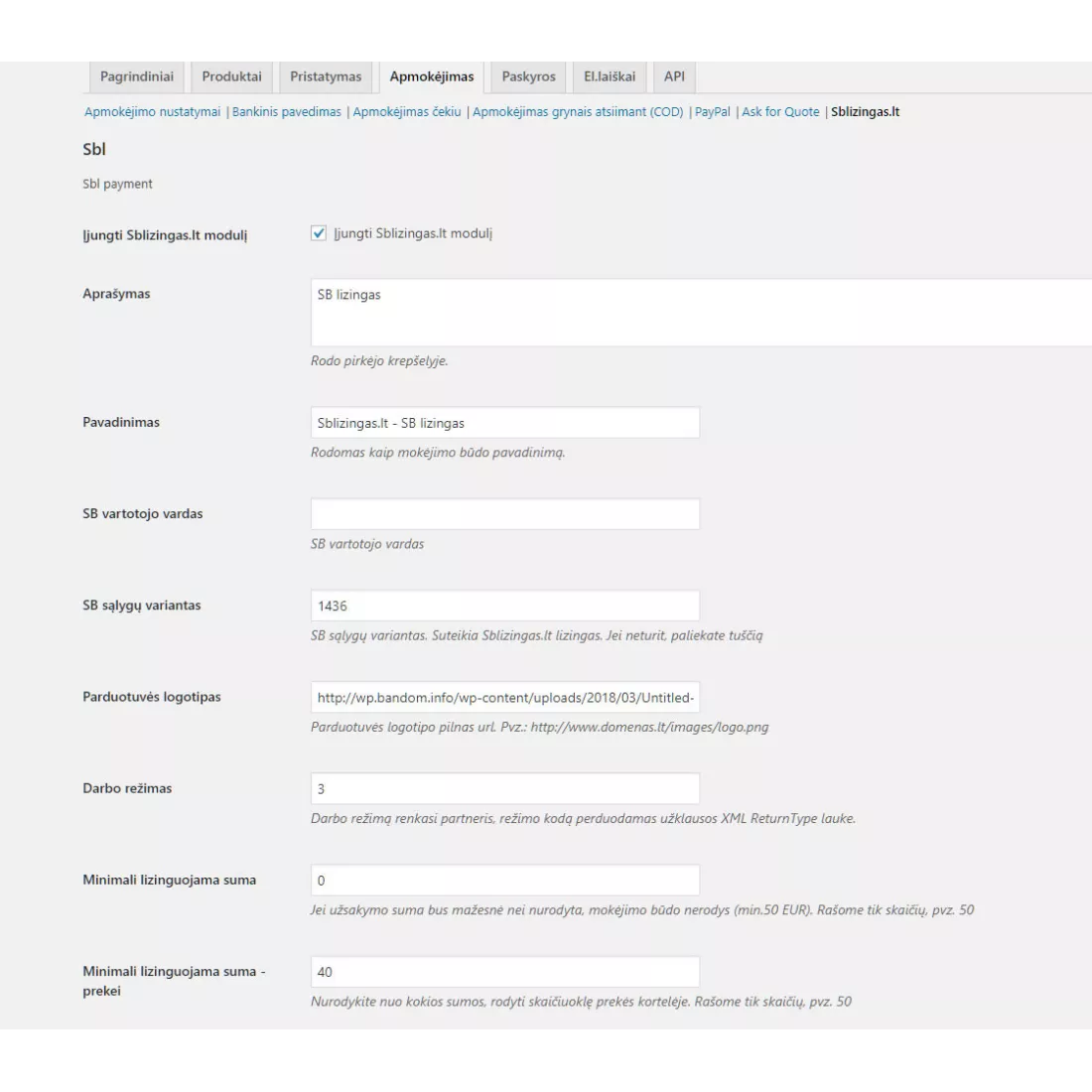 Sblizingo/Artea lizingo atsiskaitymo modulis skirtas WORDPRESS Woocommerce turinio valdymo sistemai, kuris leidžia už prekes ir paslaugas atsiskaityti naudojant ecredit elektroninę paraiškų sistemą. Pirkėjas galės pasirinkti jam patogų paraiškos pildymo būdą internetu.