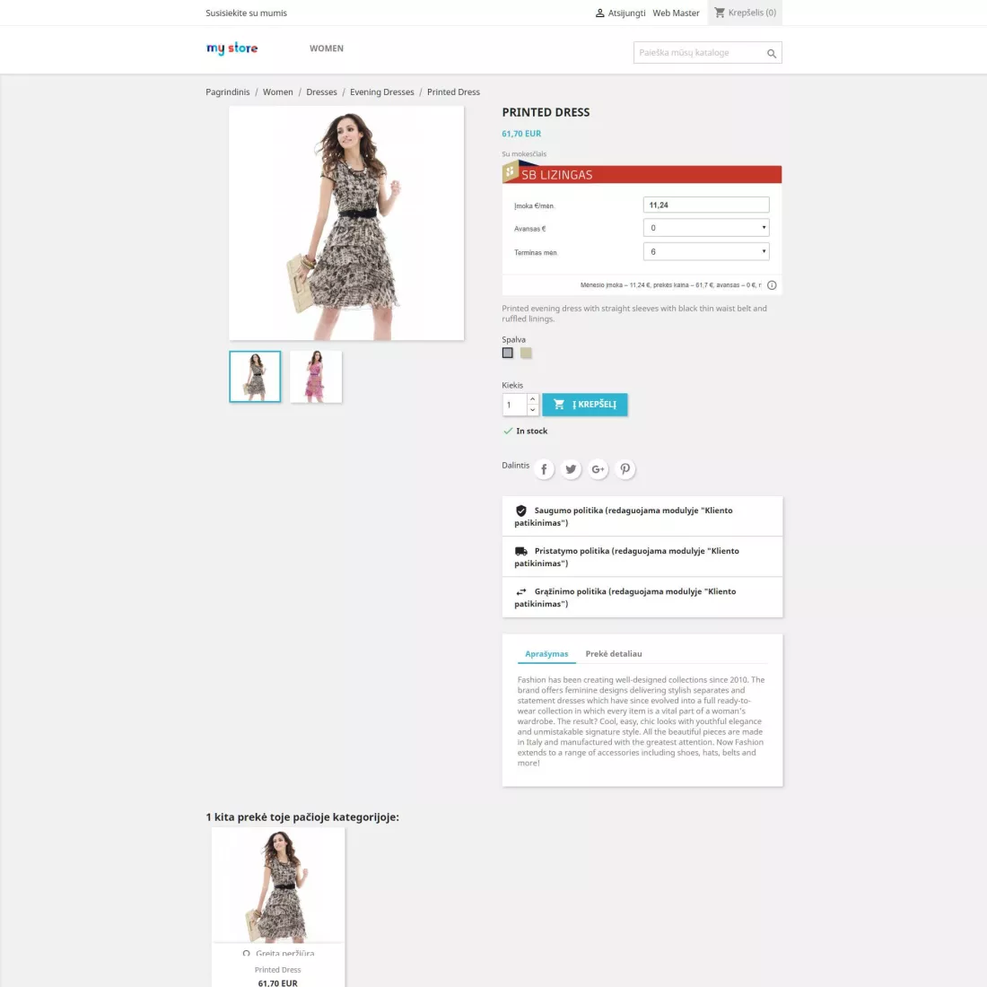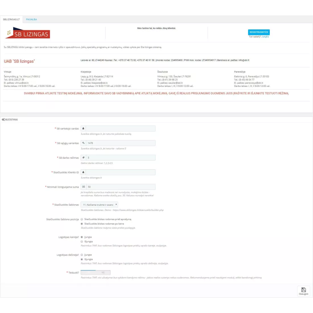 Modulis leidžia už prekes ir paslaugas atsiskaityti naudojant Artea lizingo (sblizingas) elektroninę paraiškų sistemą. Pritaikyta Prestashop 1.7, Prestashop 8, Prestashop 9 Thirtybees 1.x versijoms.